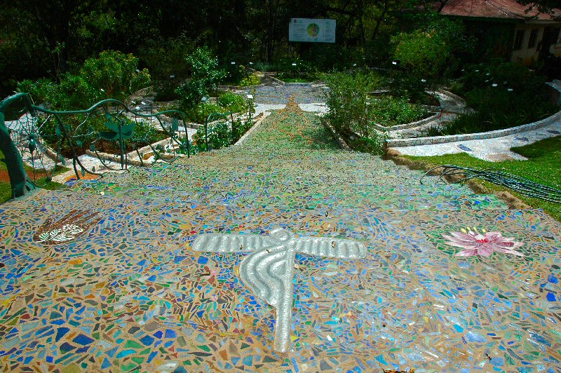 A mosaic path through the medicinal garden.