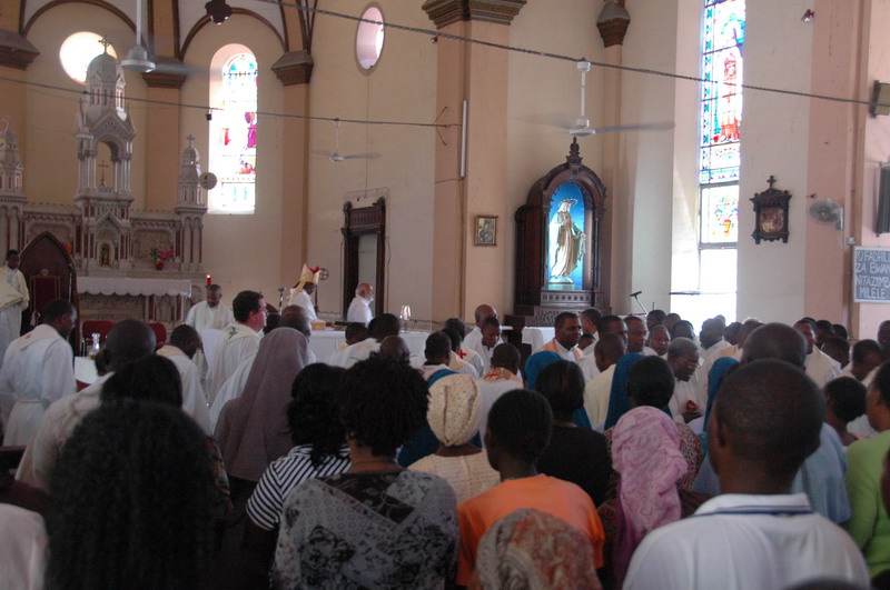We then went to the Holy Ghost Cathedral for the Chrism Mass. This is where the Bishop blesses the three oils (chrism, of catchumens and of the sick) in the presence of the priests of the diocese, who then take the oils back to their parishes, where they are used in the Maundy Thursday liturgy. The priests get the best seats!