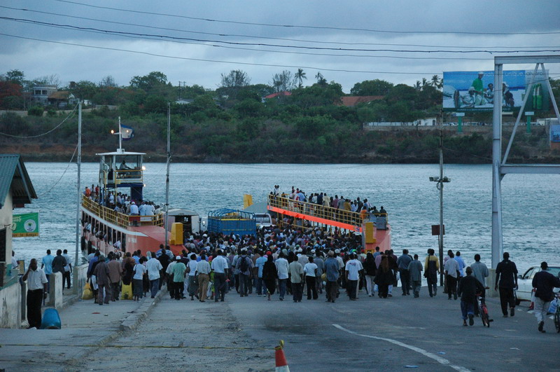 Then, via the Kenya Wildlife Service (to buy tickets for Tsavo) and Nakumatt (to buy Tusker Baridi) to the Likoni ferry. By the time we got there the queue was massive, and we waited over an hour as hoardes of pedestrians streamed onto each vessel. But we got there...