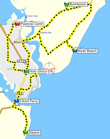 Although we thought we'd arrive in Mombasa on Tuesday night, thanks to a delay at Nairobi it was after midnight when we landed at Moi Airport, Mombasa (29 degC), and almost 1 a.m. by the time we had driven to Tudor (on the northern edge of Mombasa Island) where we were to stay at the Pastoral Centre. Pretty soon we were all in bed, within our mosquito nets, and sleeping, despite the heat.
