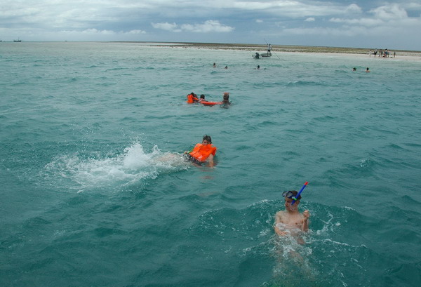 After about an hour we reached the tidal island where we were to snorkel. Meld (in tasteful orange life jacket) heads for land. Aid was less successful, couldn't get to grips with the snorkel things, swallowed a lot of very salty water and was generally like a fish out of water (in the water). Meld saw lot of coral and fish - Aid saw his life pass before him as he inhaled another gallon of seawater.