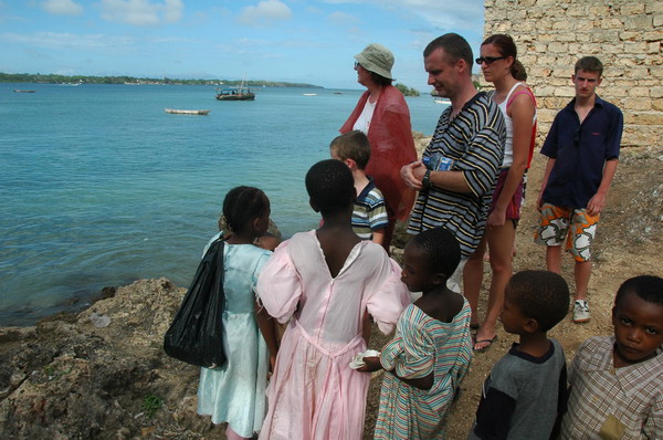 The local kids try to sell us shells as we wait for the boat back to our dhow.