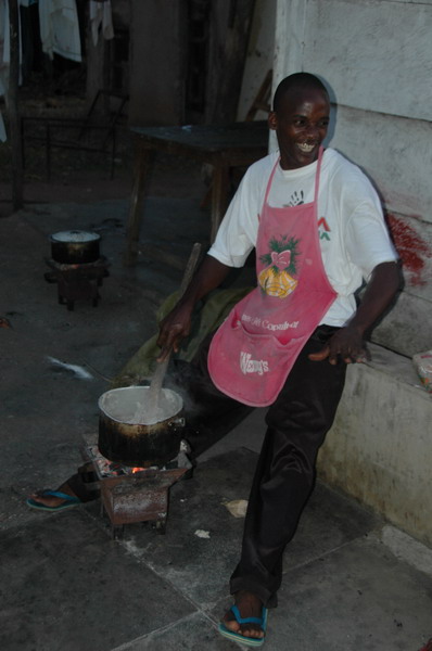 And then back to Mivumoni for supper. Willy cooking sima (ugali)