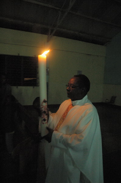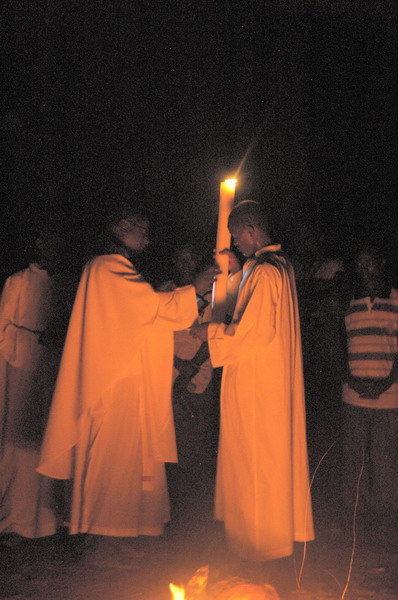 Now the sun has set the Easter Vigil can begin. We gather around the new fire.
