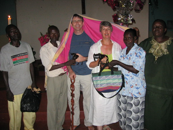 We were surprised by gifts - carved wildebeest, a walking stick, a bag and a kikoy.