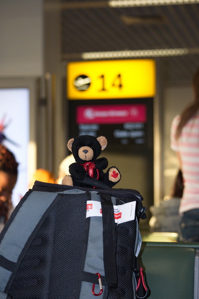 Packed, we drove to Heathrow where Clearwater Bear made his first appearance.