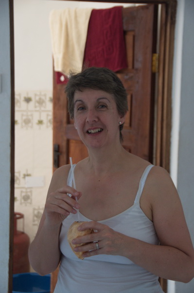 Joe's brother Jacob met us at the airport and drove us to Joe's new house at Shanzu, where we were offered coconut milk to drink.