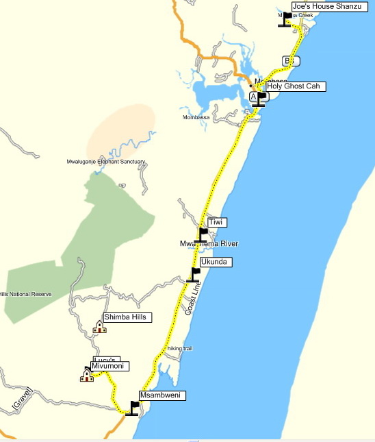 Jacob eventually managed to sort out transport and drove us south, first to the Likoni Ferry.