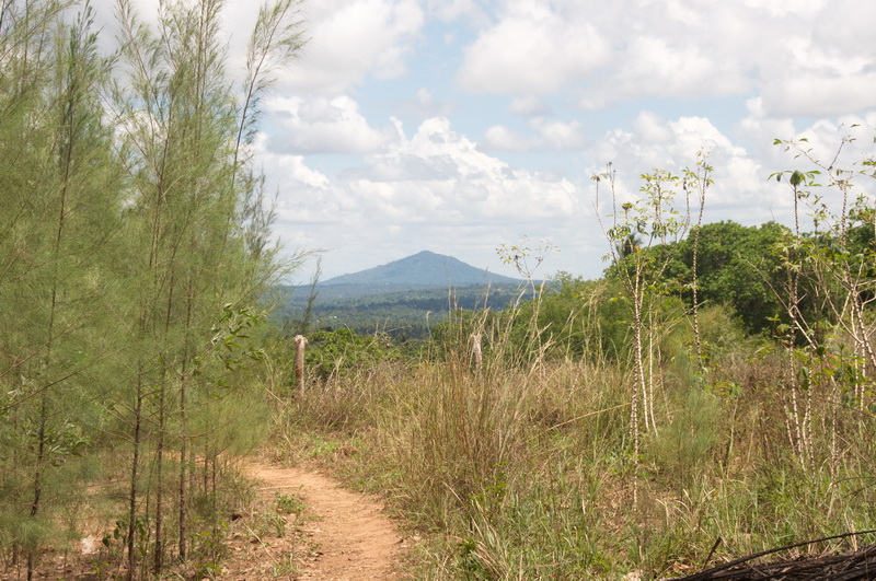View of Zoombo Hill past a cassava plot - which used to be a football pitch.