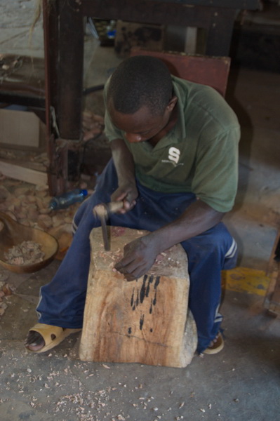 A man making carved animals in the workshops.