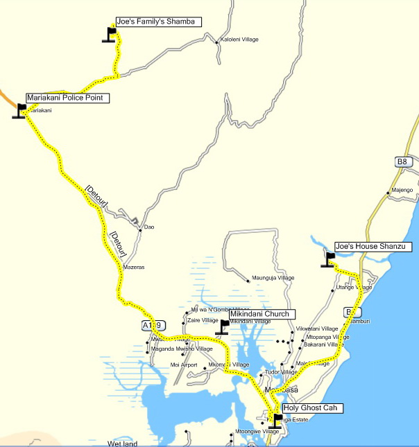 We're off the visit Joe's extended family near Mariakani, dropping Charlie and Luke and Daniel in Mombasa on our way.