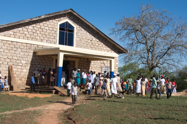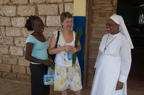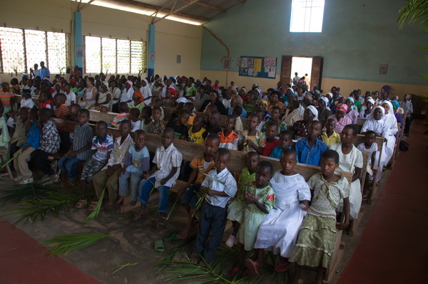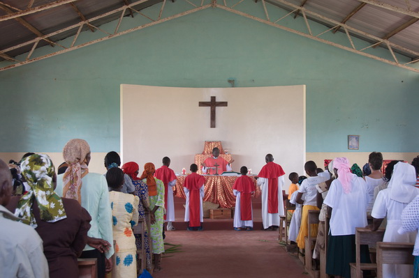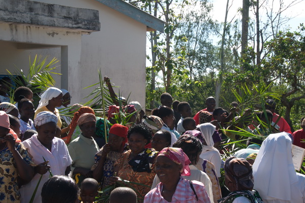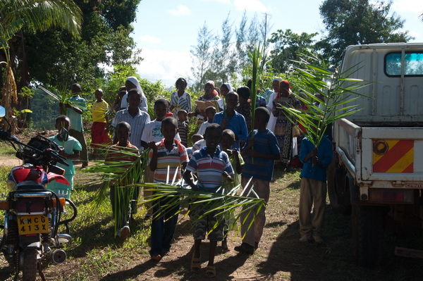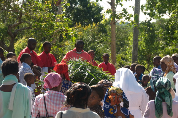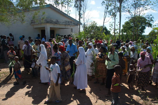 It's Palm Sunday so Mass starts outside the church - those who have assembled inside proceed to the gathering point.