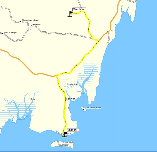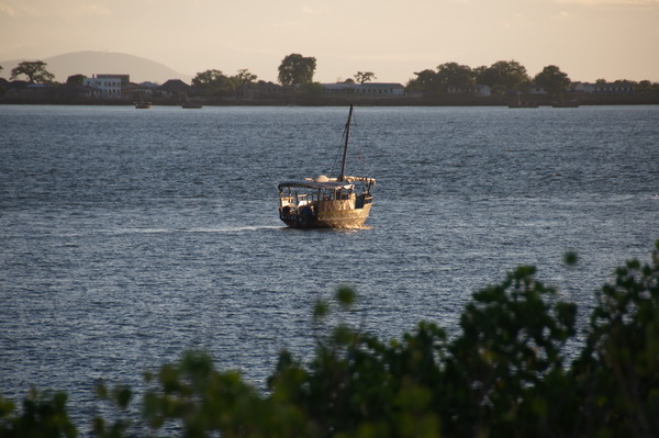 A dhow - and a hill in Tanzania behind Wasini Island.