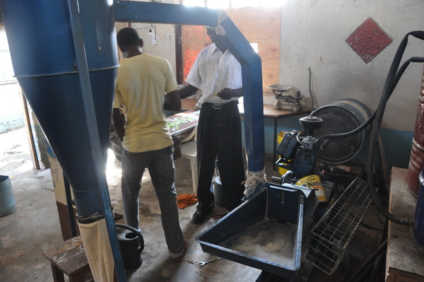 The posho mill where clients can grind their maize into flour; the project also sell flour and other products to raise funds.
