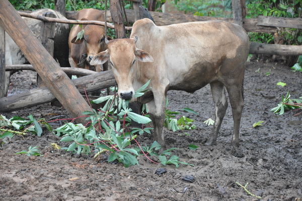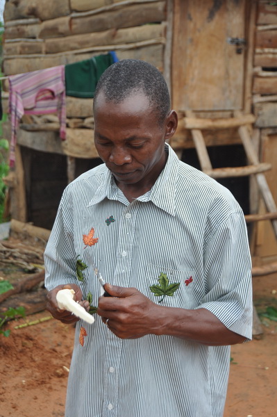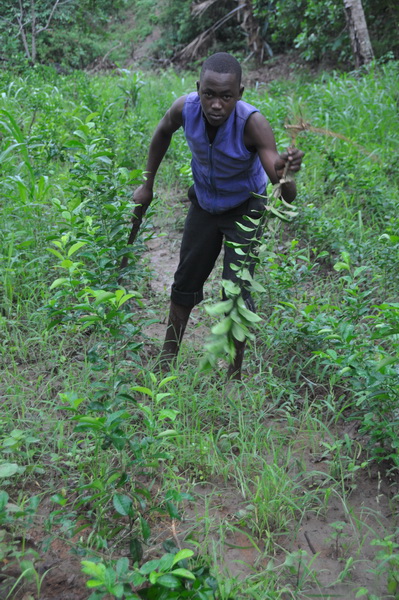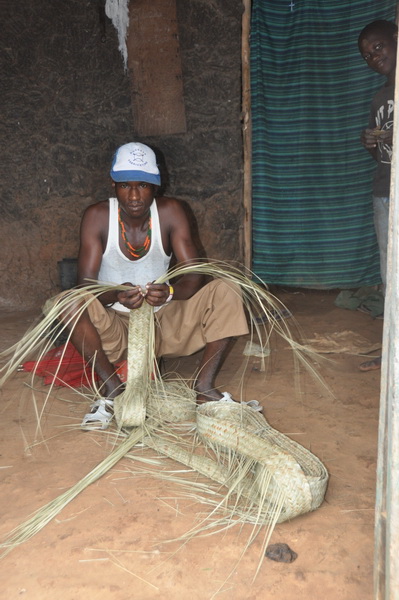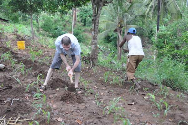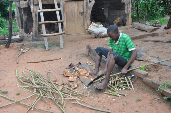 Mike peels cassave to eat raw (we had it cooked for breakfast).