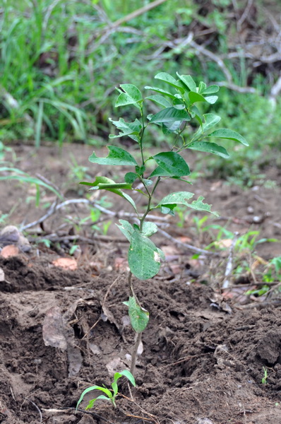 One of the lemon trees that were seedlings last year - nearly ready for grafting orange tops on them.
