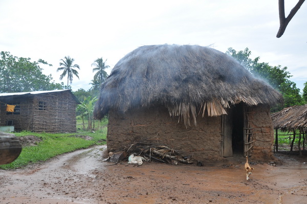 At maggy's for lunch, the steam and smoke ooze from the thatched kitchen.