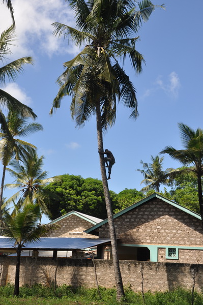 A slow start, catching up with the diary, then Martin Safari climbed the mnazi to pick coconuts for us.
