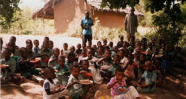 The programme gives some 100 children porridge in the morning before class and lunch (typically bean-based) before they go home. Using volunteer cooks (a.k.a. parents) they achieve this for just 50/- per child per day (about 40p sterling) - but that's £40 per day to keep it going...