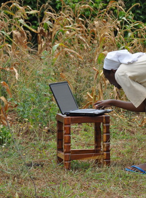 Sister Prisca keeps in touch with the outside world: sadly the Orange network in Mivumoni is rather weak, so the internet is only accessible from the garden outside their house.