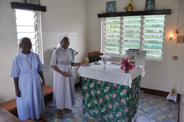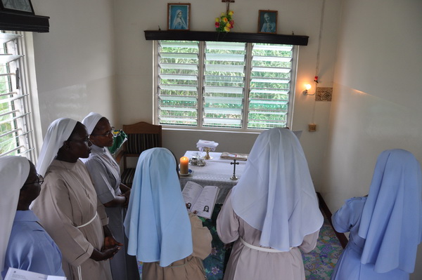 The sisters' chapel is intimate, when they are joined by the Franciscan sisters and a few guests.